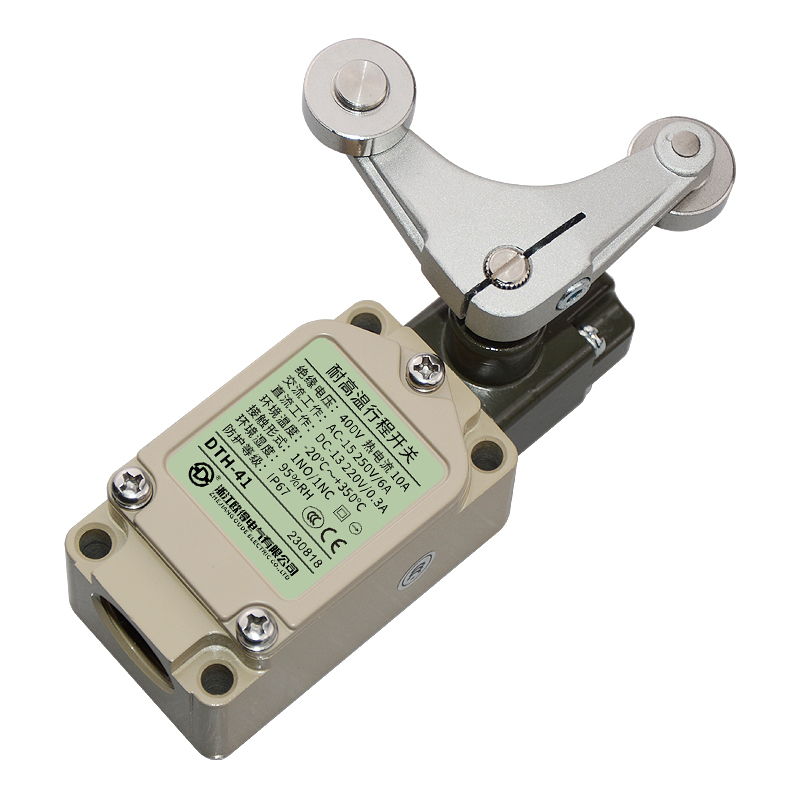• DTH-41耐高溫行程開關(guān),雙輪·叉式·擺桿·鎖定型、通用直立型,長壽命2回路限位開關(guān)。適用于鋼鐵、焦化、電廠、紡織、醫(yī)療、化工、鋁材、塑料、玻璃、輪胎等高溫加工機(jī)械設(shè)備,作位移電路通斷信號(hào)檢測(cè)控制。