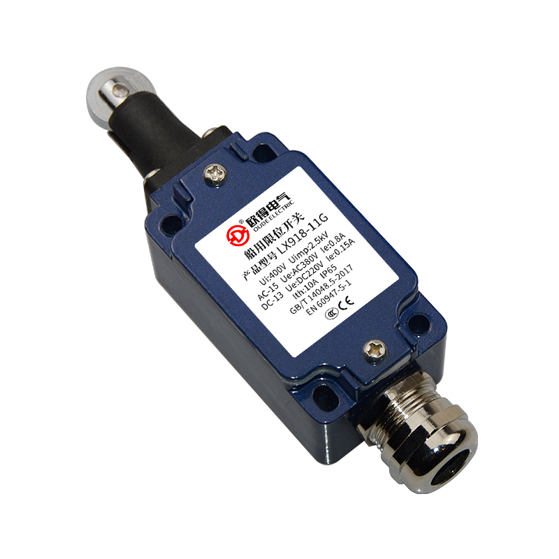 • LX918-11G船用限位開關(guān) 滾輪柱塞式 歐得行程開關(guān)。額定絕緣電壓400伏,發(fā)熱電流10安培,工作電壓電流交流380伏、0.8安培,直流220伏、0.15安培,防護(hù)等級IP65。適用于船舶、海洋平臺、港口碼頭等各種機(jī)械設(shè)備在電器設(shè)備控制回路中能限制行程的限位開關(guān)。