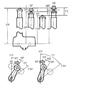 注. y為相對(duì)于全行程(TT)的比例,表示擋塊正確的按下量應(yīng)為T(mén)T的50~80%(50~70%)。 ● 柱塞型驅(qū)動(dòng)桿 在擋塊越過(guò)驅(qū)動(dòng)桿的情況下, 前進(jìn)方向和后退方向的形狀可以相同,但必須避免驅(qū)動(dòng)桿和擋塊快速分離的形狀。