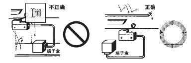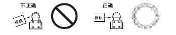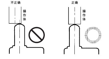 ● 關(guān)于連接 · 請(qǐng)不要在1個(gè)開(kāi)關(guān)的接點(diǎn)上連接異極、異種的電源。 · 在電路設(shè)計(jì)時(shí)請(qǐng)不要在接點(diǎn)間加電壓。(可能導(dǎo)致混觸熔化) · 即使在發(fā)生異常情況時(shí), 也不要出現(xiàn)短路的電路。(可能導(dǎo)致導(dǎo)電部位的熔斷) · 開(kāi)關(guān)用于電子電路(低電壓· 低電流) 1. 接點(diǎn)的振動(dòng)、震顫會(huì)帶來(lái)問(wèn)題時(shí),請(qǐng)采取下面的措施。 ● 關(guān)于使用環(huán)境 · 請(qǐng)不要在有引火性氣體、爆炸性氣體等環(huán)境中單獨(dú)使用開(kāi)關(guān)。隨著開(kāi)關(guān)引起的電弧發(fā)熱,會(huì)造成失火或爆炸等原因。 · 限位開(kāi)關(guān)也會(huì)由于在室外或特殊的切削油的關(guān)系導(dǎo)致開(kāi)關(guān)材質(zhì)變質(zhì)及劣化,因此選擇機(jī)種時(shí)請(qǐng)垂詢。 · 請(qǐng)不要在有熱水(+60℃以上) 的地方和水蒸氣中使用。 · 操作人員不小心將開(kāi)關(guān)安裝在易發(fā)生誤動(dòng)作或事故的地方時(shí),請(qǐng)加裝外罩。 · 開(kāi)關(guān)受到連續(xù)的振動(dòng)和沖擊時(shí),產(chǎn)生的磨損粉末可能導(dǎo)致接點(diǎn)接觸不良和動(dòng)作失常、耐久性下降等問(wèn)題。此外,如有過(guò)大的振動(dòng)和沖擊,可能會(huì)發(fā)生接點(diǎn)的誤動(dòng)作和破損等,因此請(qǐng)將其安裝在不會(huì)受到振動(dòng)和沖擊的位置和不會(huì)發(fā)生共振的方向上。 ● 關(guān)于定期檢查和定期更換 · 在一直按下的狀態(tài)下, 如果開(kāi)關(guān)頻率較低(1次以下/日), 則可能會(huì)由于零件的劣化導(dǎo)致復(fù)位不良。請(qǐng)事先確認(rèn)并定期進(jìn)行檢查。 ● 關(guān)于開(kāi)關(guān)的保管 · 請(qǐng)避免在惡性氣體(H2S、SO2、NHO3、Cl2等) 和有塵埃、高溫多濕的環(huán)境中存放開(kāi)關(guān)。 ● 關(guān)于耐氣候、耐寒、耐熱規(guī)格 為了提高耐氣候、耐寒、耐熱性能, 使用了硅橡膠, 硅橡膠部分情況下可能產(chǎn)生硅氣體(常溫下可能發(fā)生, 高溫下產(chǎn)生量會(huì)進(jìn)一步增加) 。 這種氣體通過(guò)電弧能量反應(yīng), 會(huì)生成二氧化硅(SiO2) 。二氧化硅(SiO2) 不斷堆積在接點(diǎn)上, 會(huì)發(fā)生接觸障礙, 可能影響設(shè)備的正常運(yùn)行。使用前請(qǐng)務(wù)必按照實(shí)際使用條件(包括環(huán)境、動(dòng)作次數(shù)) 進(jìn)行評(píng)價(jià), 在確認(rèn)性能上沒(méi)有問(wèn)題后, 在進(jìn)行使用。 ● 關(guān)于室外使用 · 在有泥水、粉塵的地方, 請(qǐng)使用機(jī)械部位密封的橡皮帽限位開(kāi)關(guān)。 ● 關(guān)于操作 ·為避免開(kāi)關(guān)的驅(qū)動(dòng)桿急速返回或受到?jīng)_擊, 請(qǐng)考慮操作體(凸輪、擋塊等) 進(jìn)行操作。以相對(duì)快的動(dòng)作操作開(kāi)關(guān)時(shí), 必須使用能對(duì)繼電器和閥門(mén)進(jìn)行充分勵(lì)磁且保持行程較長(zhǎng)的凸輪和擋塊。 · 在旋轉(zhuǎn)運(yùn)動(dòng)、直線運(yùn)動(dòng)時(shí)也必須在開(kāi)關(guān)的驅(qū)動(dòng)桿上施加正常的載荷。如下圖所示, 擋塊觸到擺桿時(shí), 動(dòng)作位置將無(wú)法穩(wěn)定。 · 請(qǐng)不要在開(kāi)關(guān)的驅(qū)動(dòng)桿上施加偏載荷, 或者引起局部磨擦。 · 如果從斜面向開(kāi)關(guān)的驅(qū)動(dòng)桿(滾珠) 上施加載荷, 可能會(huì)造成驅(qū)動(dòng)桿和旋轉(zhuǎn)軸的變形、折損,因此請(qǐng)保持擋塊垂直。 · 請(qǐng)?jiān)O(shè)置驅(qū)動(dòng)桿不超過(guò)過(guò)行程(OT)。過(guò)行程(OT)超過(guò)限制的話,可能引起故障。安裝時(shí)請(qǐng)充分考慮操作總行程后進(jìn)行調(diào)整。 · 過(guò)行程過(guò)大時(shí), 可能會(huì)誘發(fā)早期的故障。因此在安裝時(shí)必須進(jìn)行調(diào)整,必須事先對(duì)操作體的工序進(jìn)行充分的討論。 · 在針狀按鈕型中, 按鈕的行程和操作體的行程必須在一條垂直線上。 · 請(qǐng)配合驅(qū)動(dòng)桿的特性使用開(kāi)關(guān)。請(qǐng)不要如下圖所示箭頭方向那樣使用滾珠懸臂擺桿型。 · 請(qǐng)不要對(duì)驅(qū)動(dòng)桿進(jìn)行加工而導(dǎo)致動(dòng)作位置的變化。 ● 擋塊的設(shè)計(jì) 關(guān)于擋塊的速度及角度與驅(qū)動(dòng)桿的關(guān)系 <滾珠擺桿型驅(qū)動(dòng)桿> (1)擋塊不會(huì)越過(guò)驅(qū)動(dòng)桿的情況下